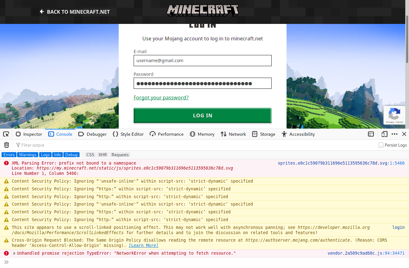 *Unhandled promise rejection TypeError: "NetworkError when attempting to fetch resource."*