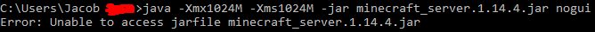 java -Xmx1024M -Xms1024M -jar server.jar noguiAs Command Prompt or Microsoft Powershell doesn't recognize the file minecraft_server.1.14.4.jar because it doesn't exist.