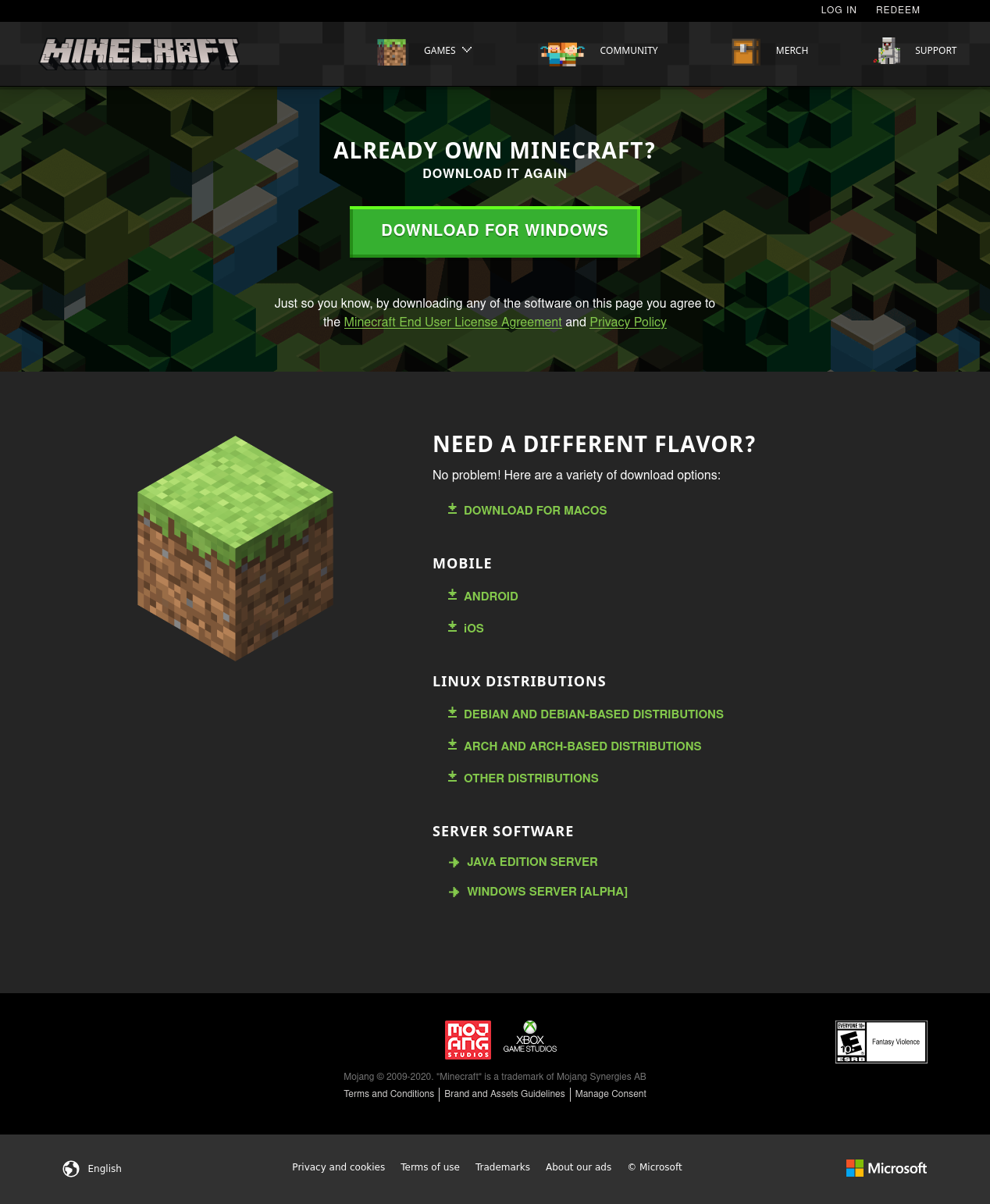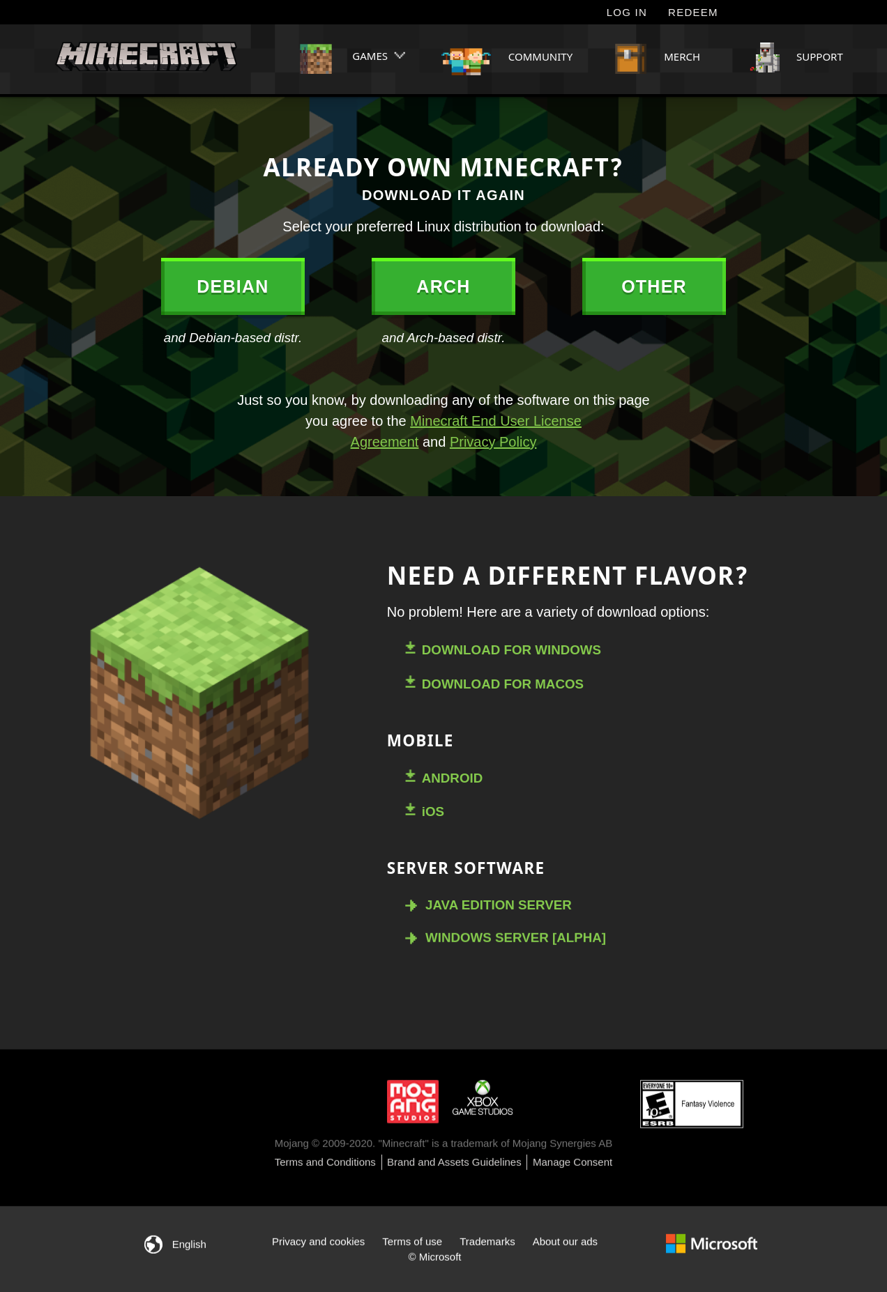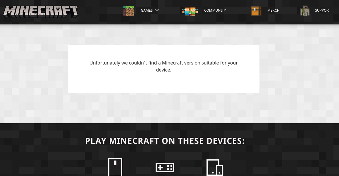 When accessing the https://www.minecraft.net/en-us/download page, I get "Unfortunately we couldn't find a Minecraft version suitable for your device.".