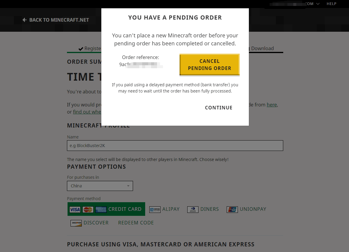 Many Chinese players have noticed that they can't buy Minecraft: Java Edition on Minecraft.net via Alipay or China UnionPay.