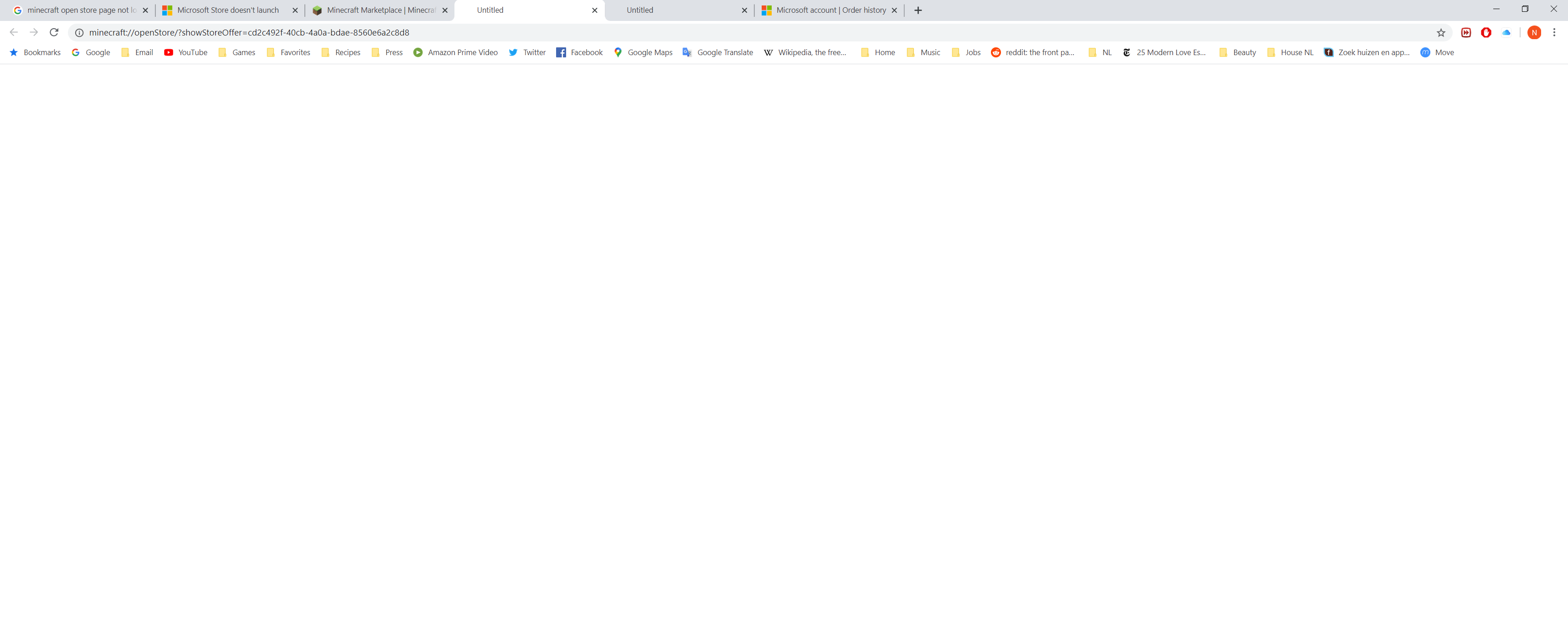 Hi. I am trying to purchase a texture pack for my Minecraft realm. But not matter which pack I choose, when I click on "get this item", the corresponding page does not load and stays blank (see attached screenshot).