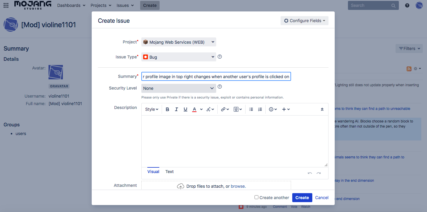 I'm attaching a screenshot of the page I am on right now. I clicked on a mod's name in the bug tracker, and the little picture of my profile (usually one of the default profile pictures) changed to their profile picture. This is only a temporary thing (it isn't actually changed) but it's just a little bug I found here.