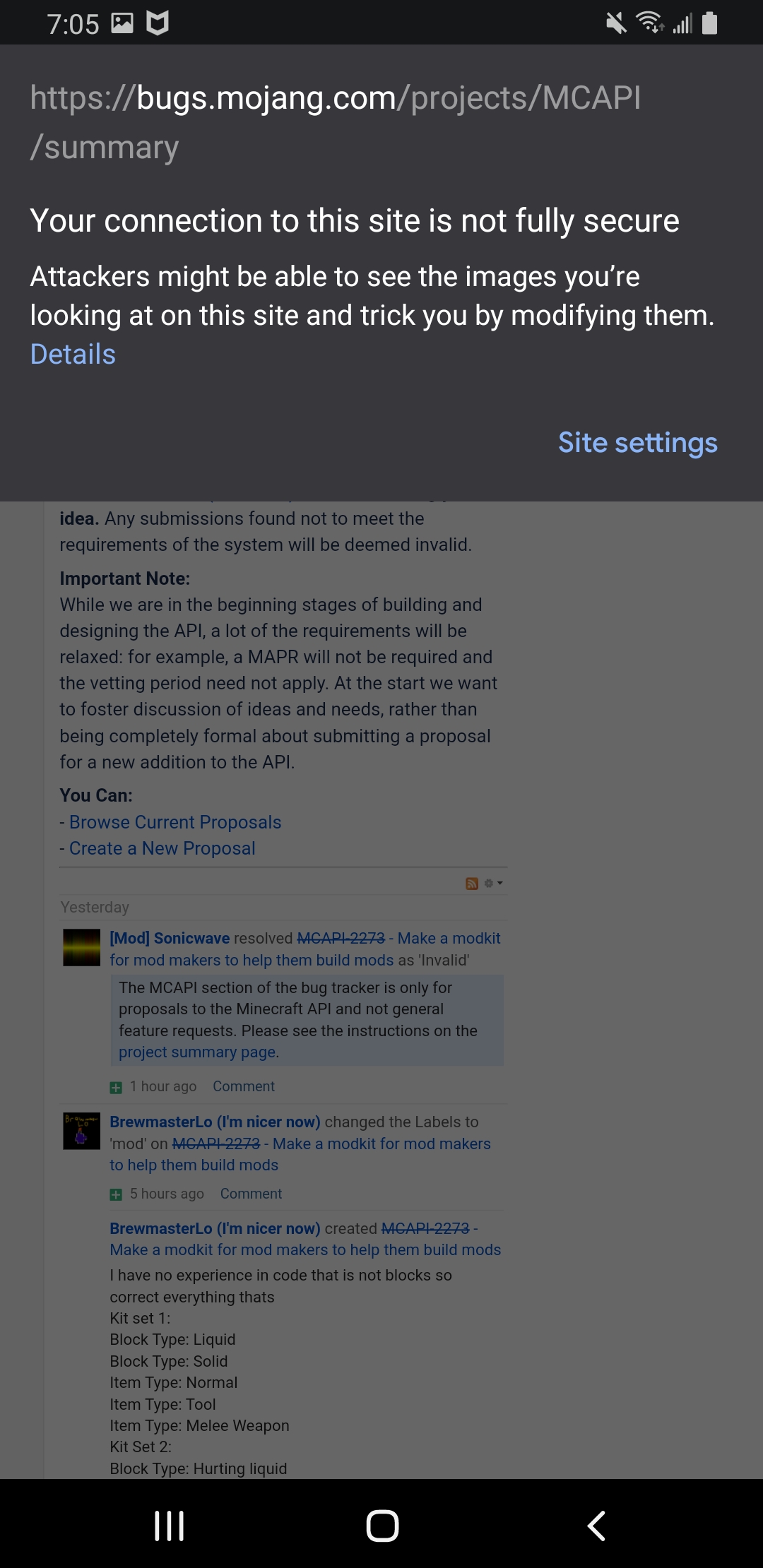 This is caused by MC-1 and MCAPI dashboard loading imgur links through HTTP instead of HTTPS. See WEB-3064