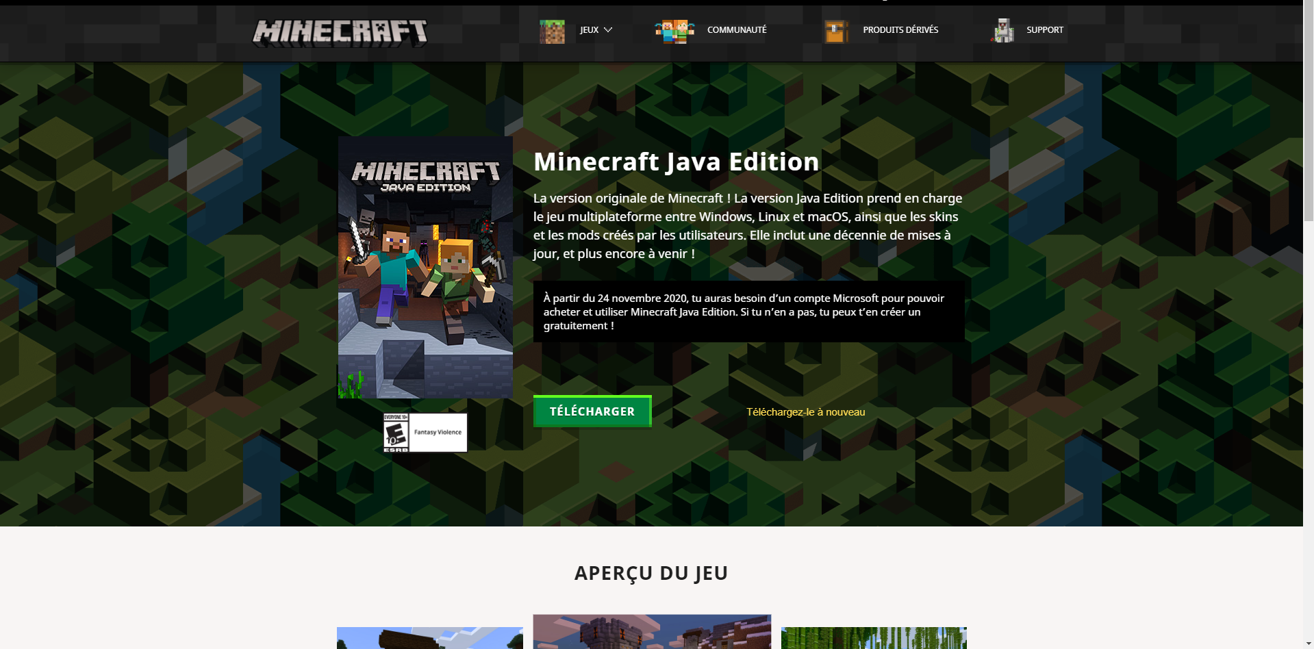 Leads you to https://www.minecraft.net/fr-fr/store/Télécharger which is not an actual web page.