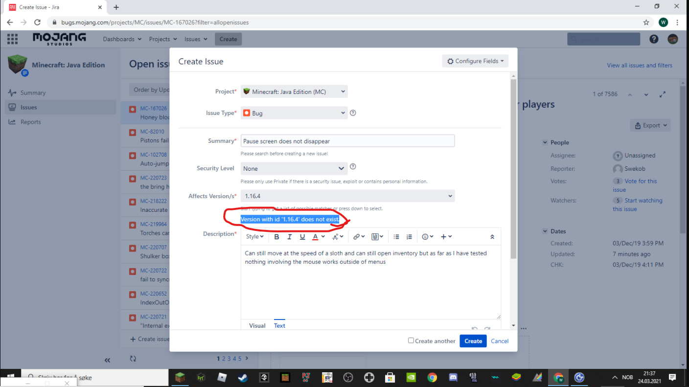 1.16.4 is not recognized as a version on the bug tracker