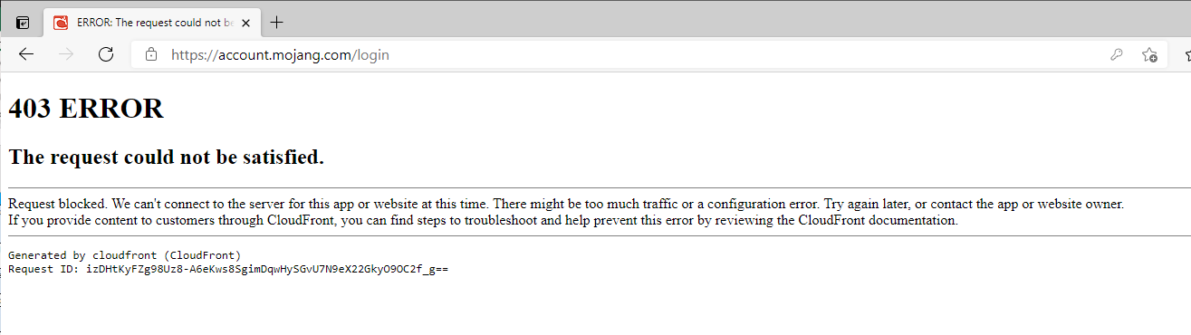 I'm currently unable to login to account.mojang.com - I receive an error that's displayed in the attached screenshot. I've completed the following troubleshooting: