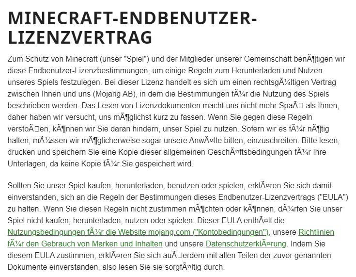 Ö, Ü, and Ä are broken in the German translation of the Minecraft EULA: https://www.minecraft.net/de-de/eula and therefore appear as "ö". "ü", and "ä" respectively.