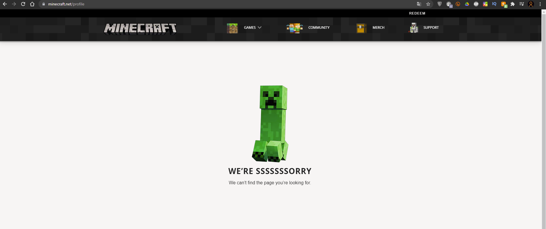 It either says "Not found" or "404 WE'RE SSSSSSSORRY"
