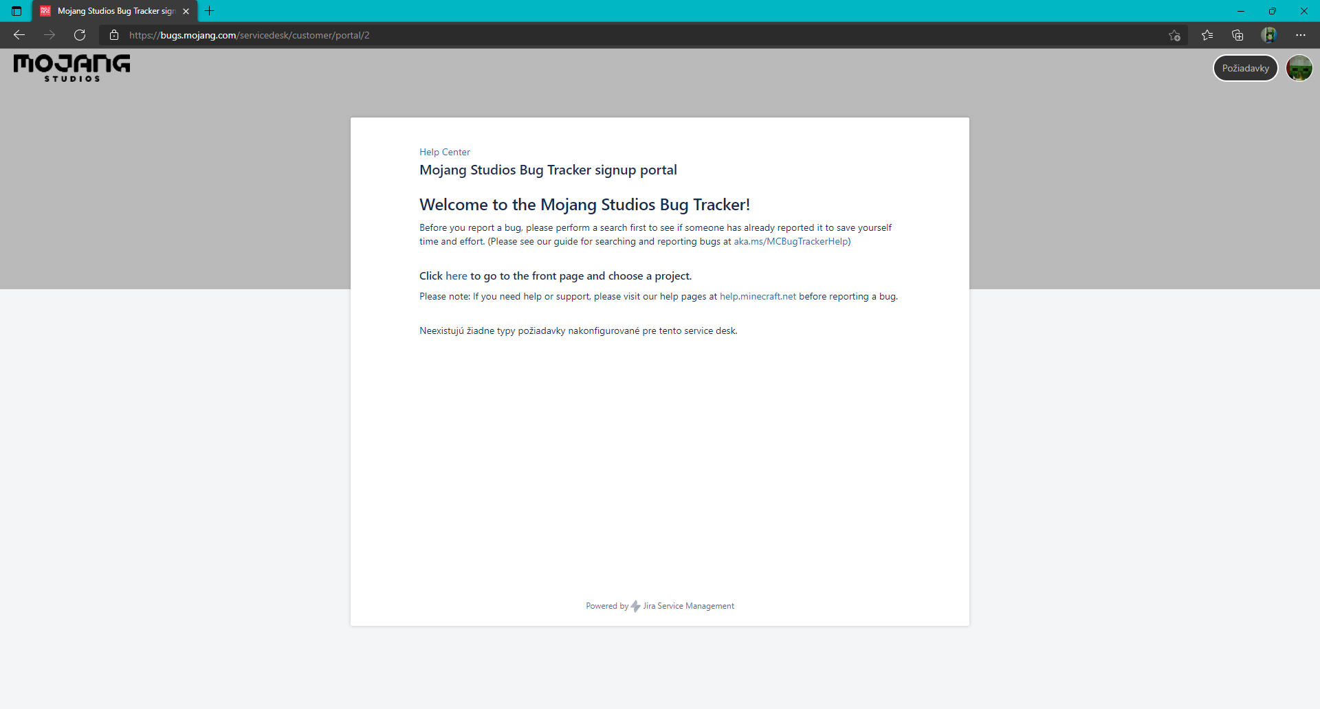 (I was transported to the https://bugs.mojang.com/servicedesk/customer/portal/2)