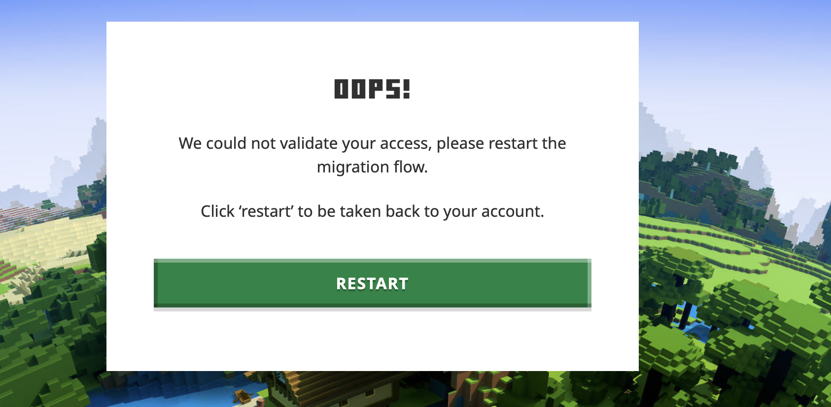 We are aware of some users having issues completing the account migration from Mojang accounts to Microsoft accounts. During the flow, users are prompted with: