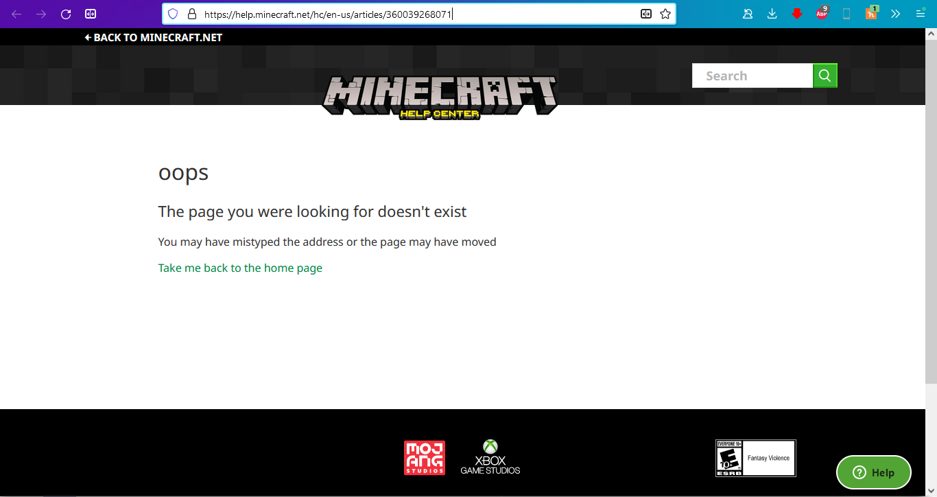 The summary for the Mojang Web Services project includes a "Useful Links" section, but the first link leads to a nonexistent article on help.minecraft.net instead of linking to this help article.