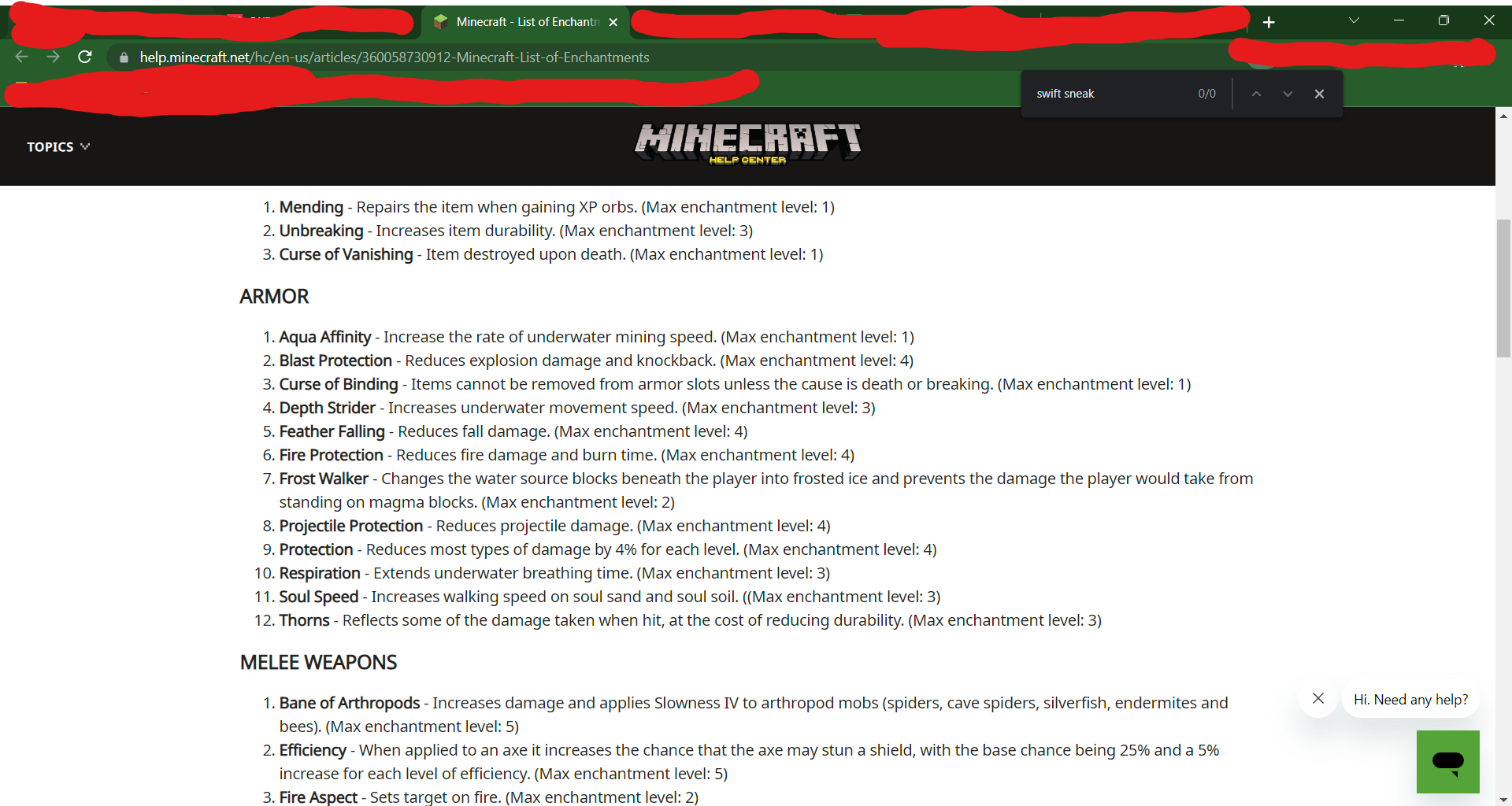 https://help.minecraft.net/hc/en-us/articles/360058730912-Minecraft-List-of-Enchantments