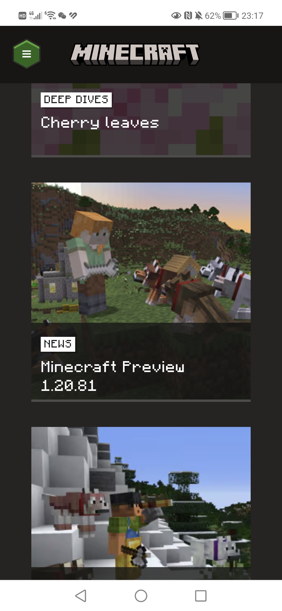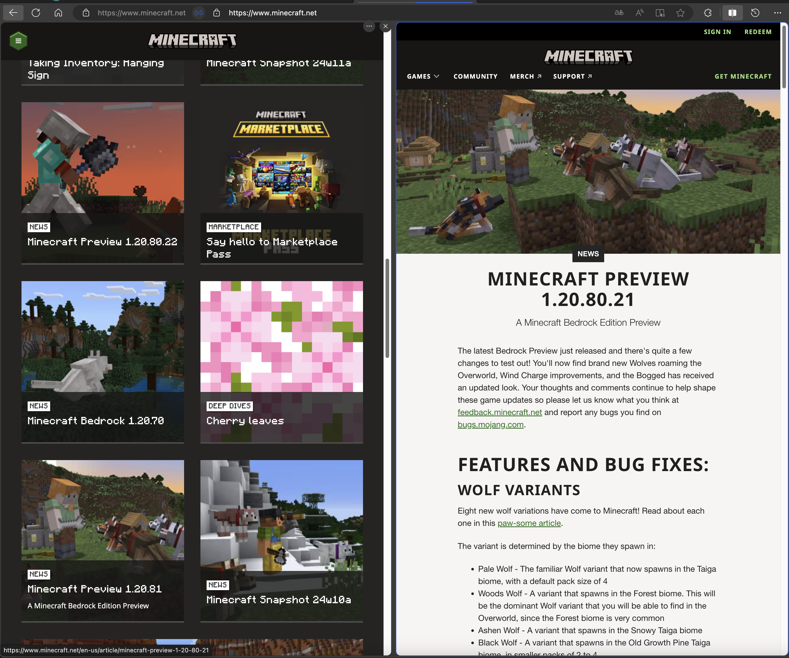 1.20.80.21 Preview displayed as "1.20.81 Preview" on the new homepage and the news page(Minecraft.net/en-us/articles).
