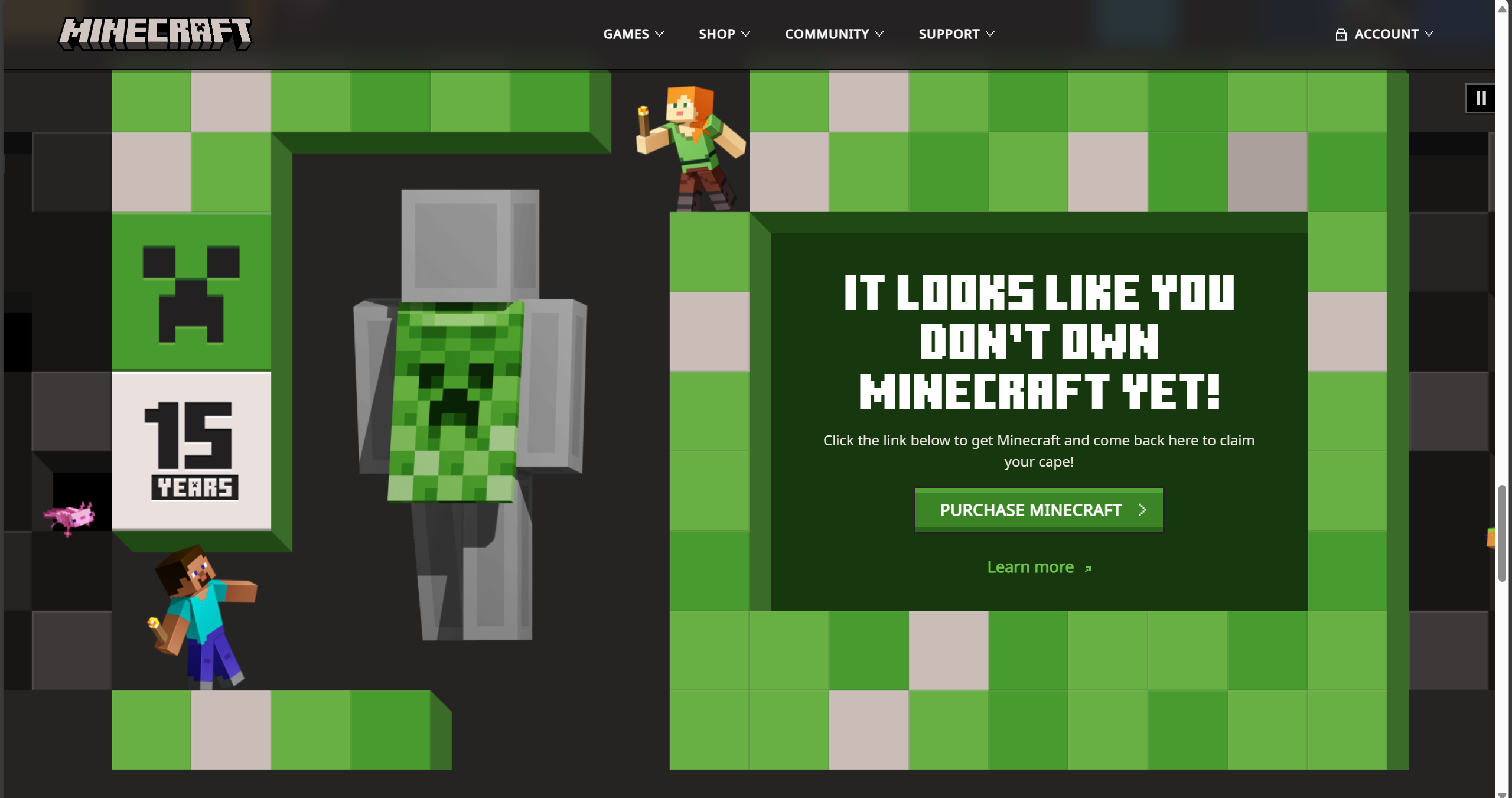 Hello There! It a known issue, some of the players can't receive/redeem their 15th Anniversary Cape! Mojang currently is trying to resolve it! Make sure you stay updated with their Twitter!