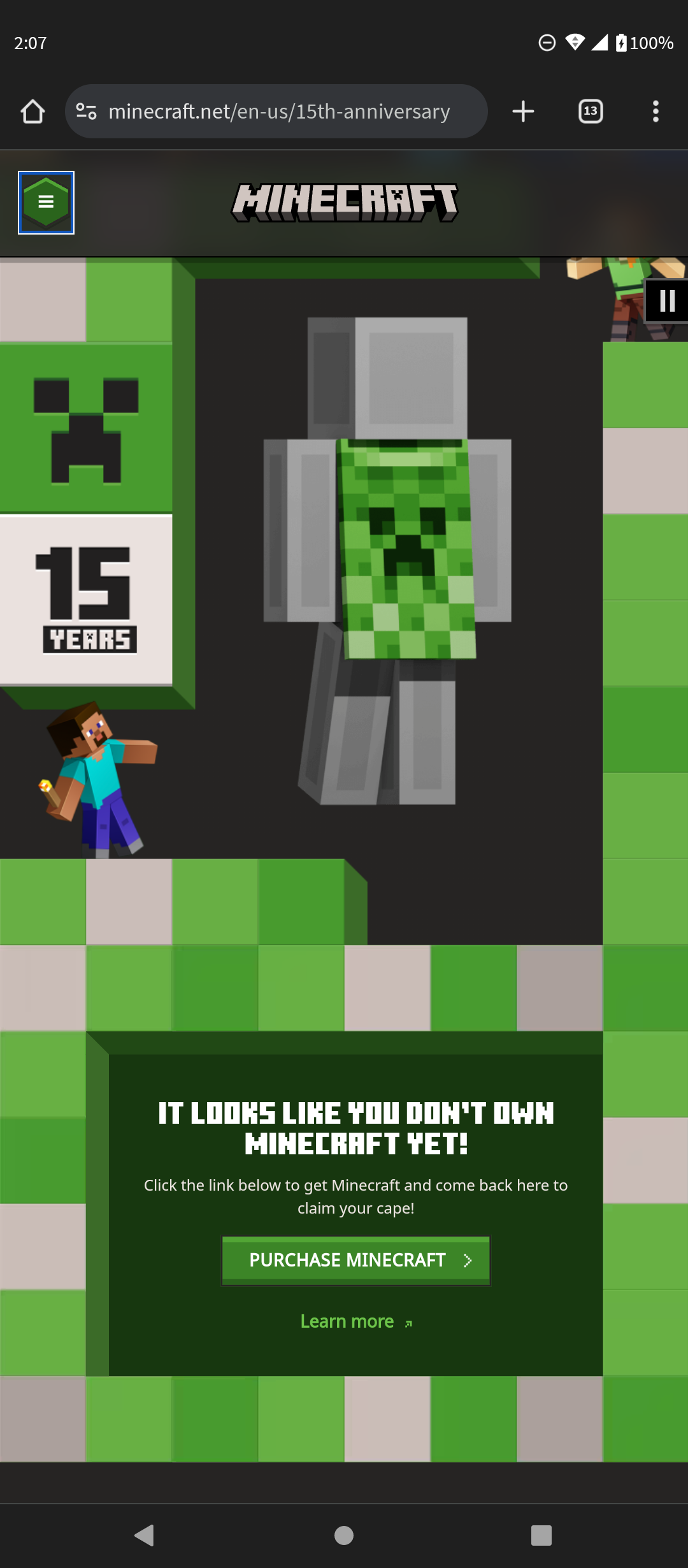 I can't claim the green creeper cape it says I don't own Minecraft but I do own Minecraft here's proof