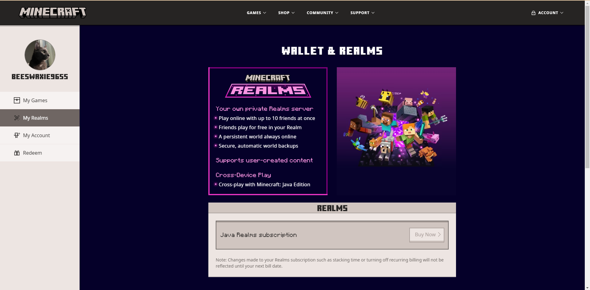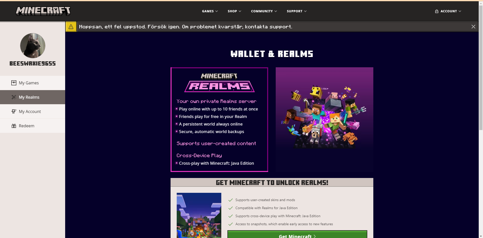 Whenever I attempt to renew my realm server, it does not allow me to. It also shows me a banner in Swedish that I don't understand. When I refresh the page, sometimes it acts as though I do not own Minecraft: Java edition.