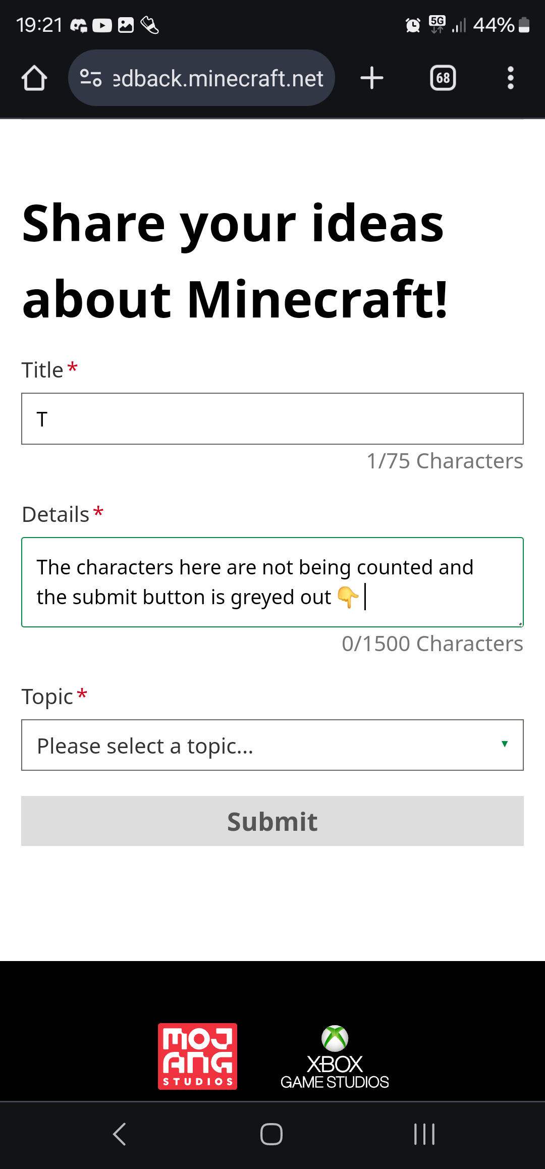 I am unable to submit comments on people's ideas in the community feedback area 😔 The submit button is greyed out and it says 0 of 1500 characters used even though I've typed something. I tried to create a new post to check if that works but the submit button is broken (greyed out) there too.