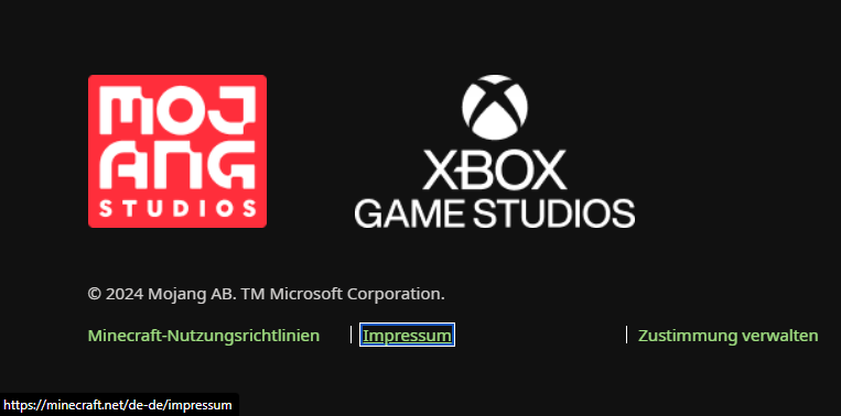 The footer of every page on https://www.minecraft.net/de-de includes the "Impressum" link required by German law. However this link is pointing to https://www.minecraft.net/de-de/impressum which is a page that doesn't exist.