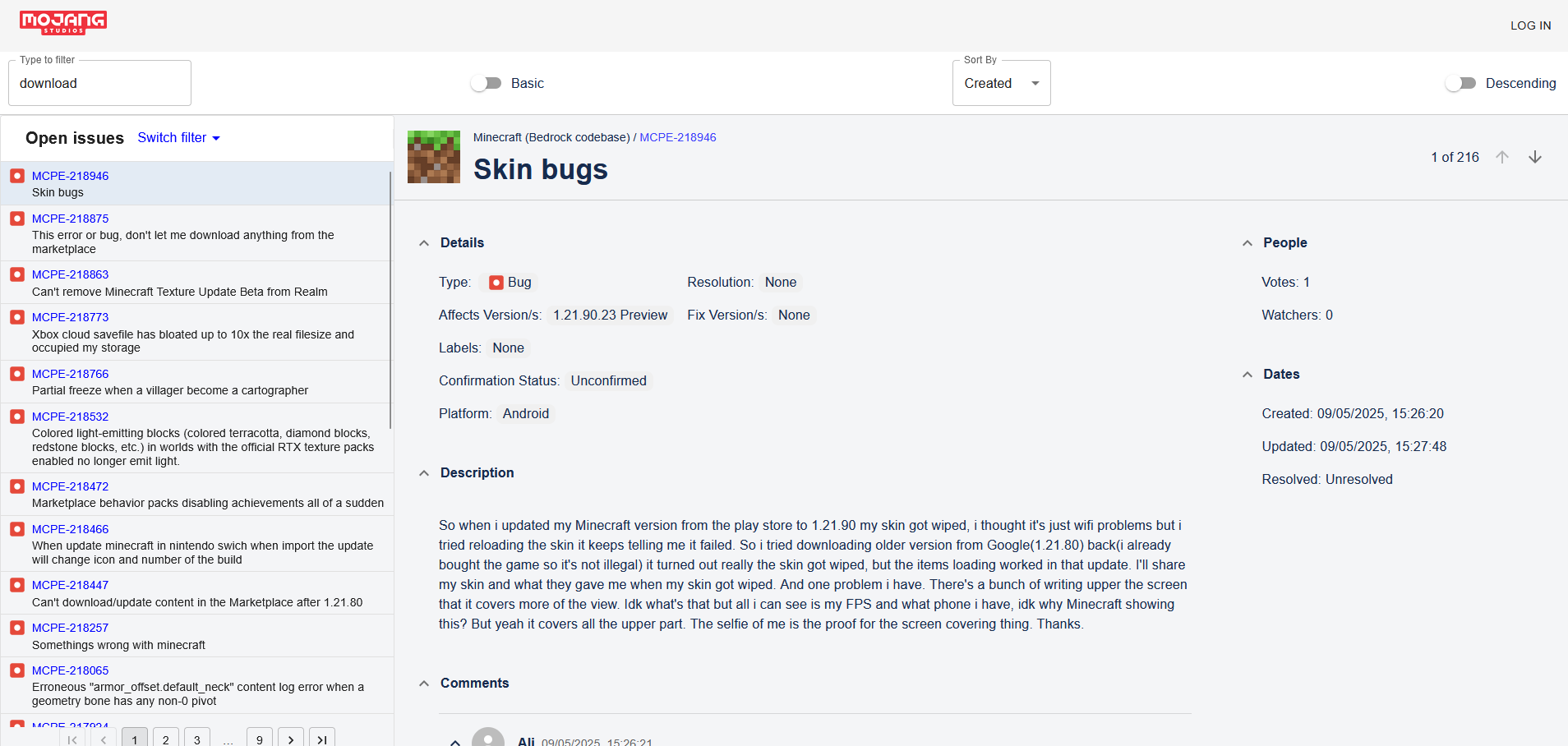1: Enter https://bugs.mojang.com