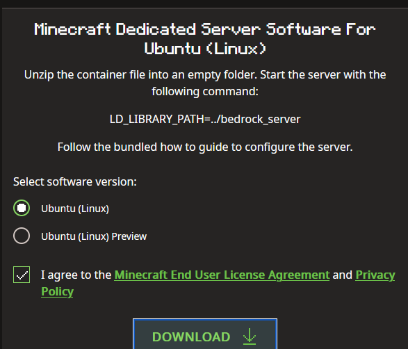 The currently displayed instructions to run the server on ubunutu are to run this command: