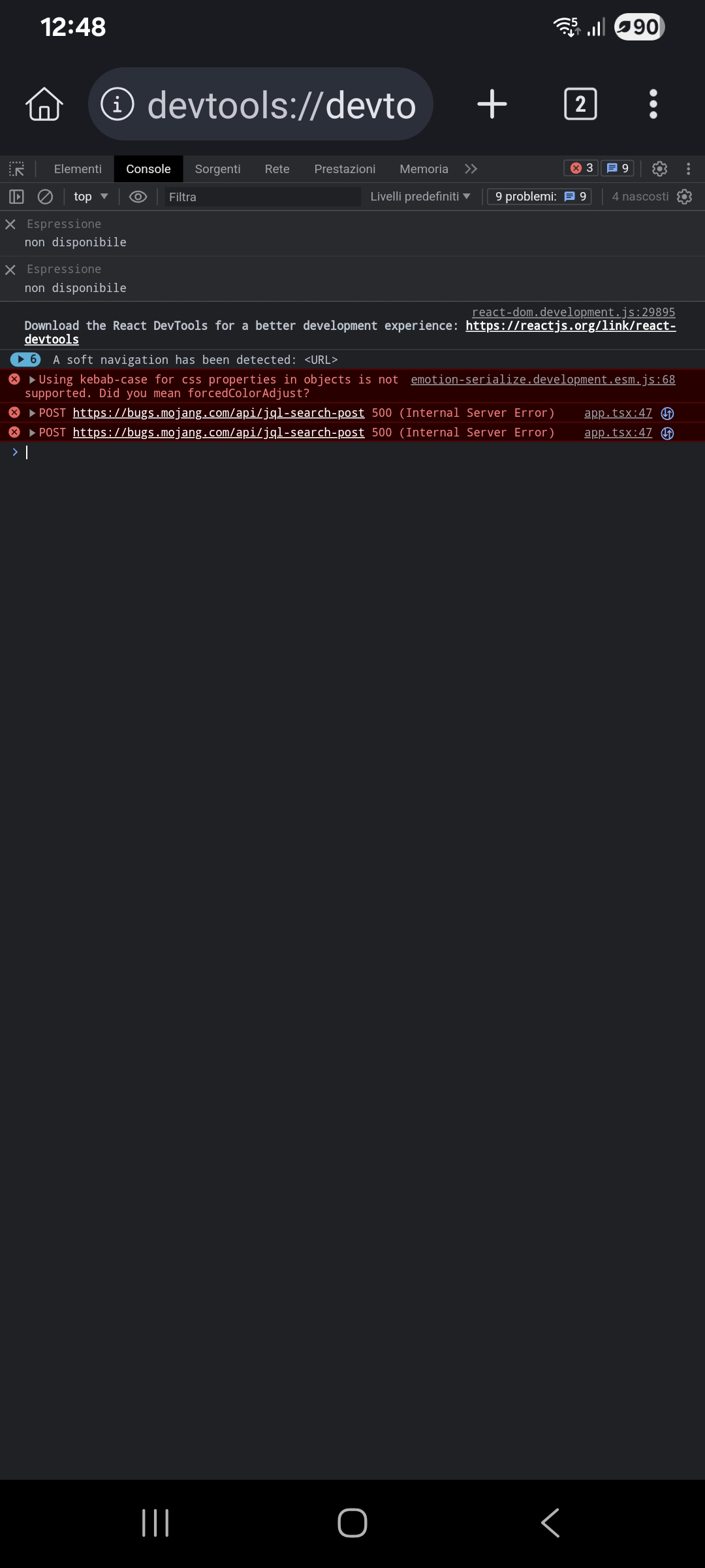 Report Different?: im writing again this, because i did find it where come from that error in Jql-search-post (i found it: https://bugs.mojang.com/api/jql-search-post) when getting that error code, in the network tab of the console will be writted this Jql-search-post i think is something to do with basic option in the bugs.mojang.com website.