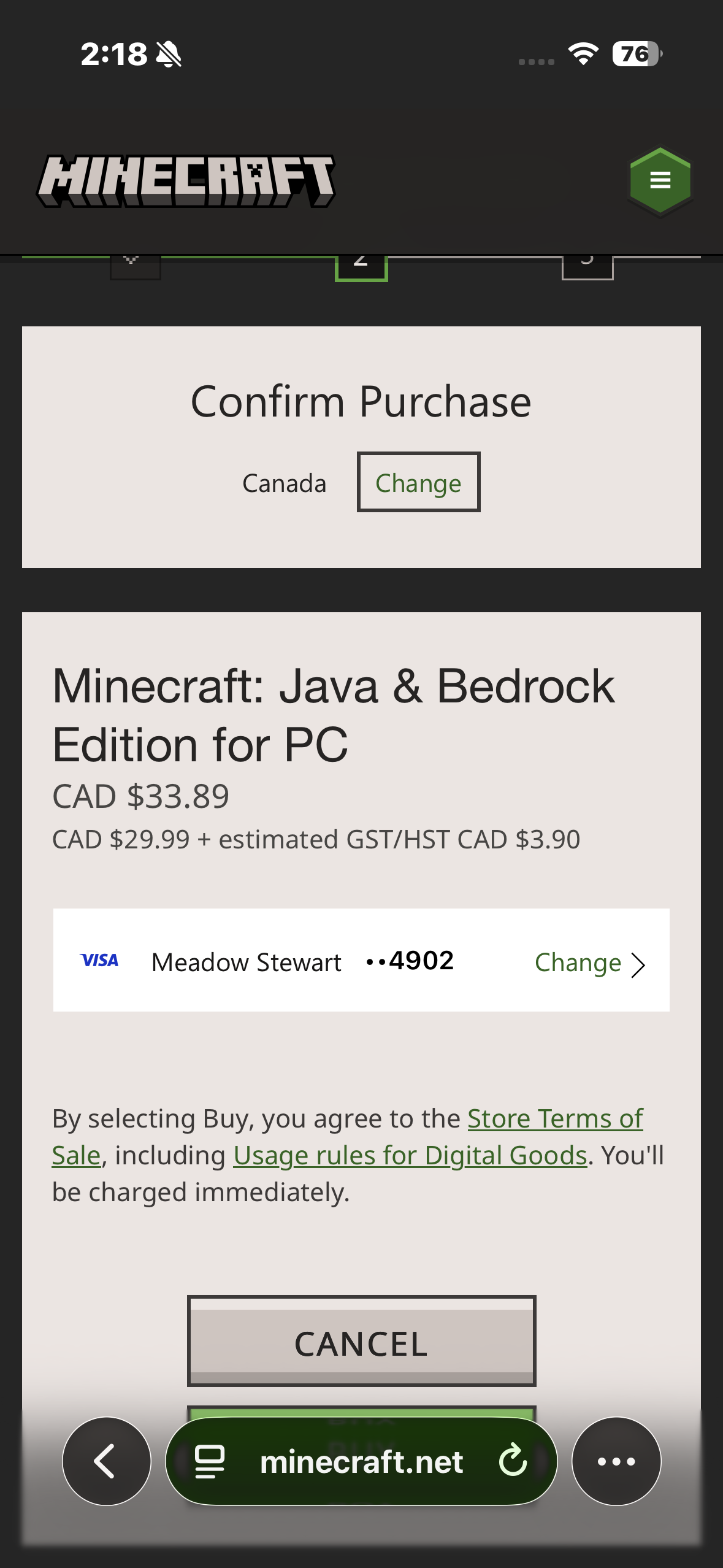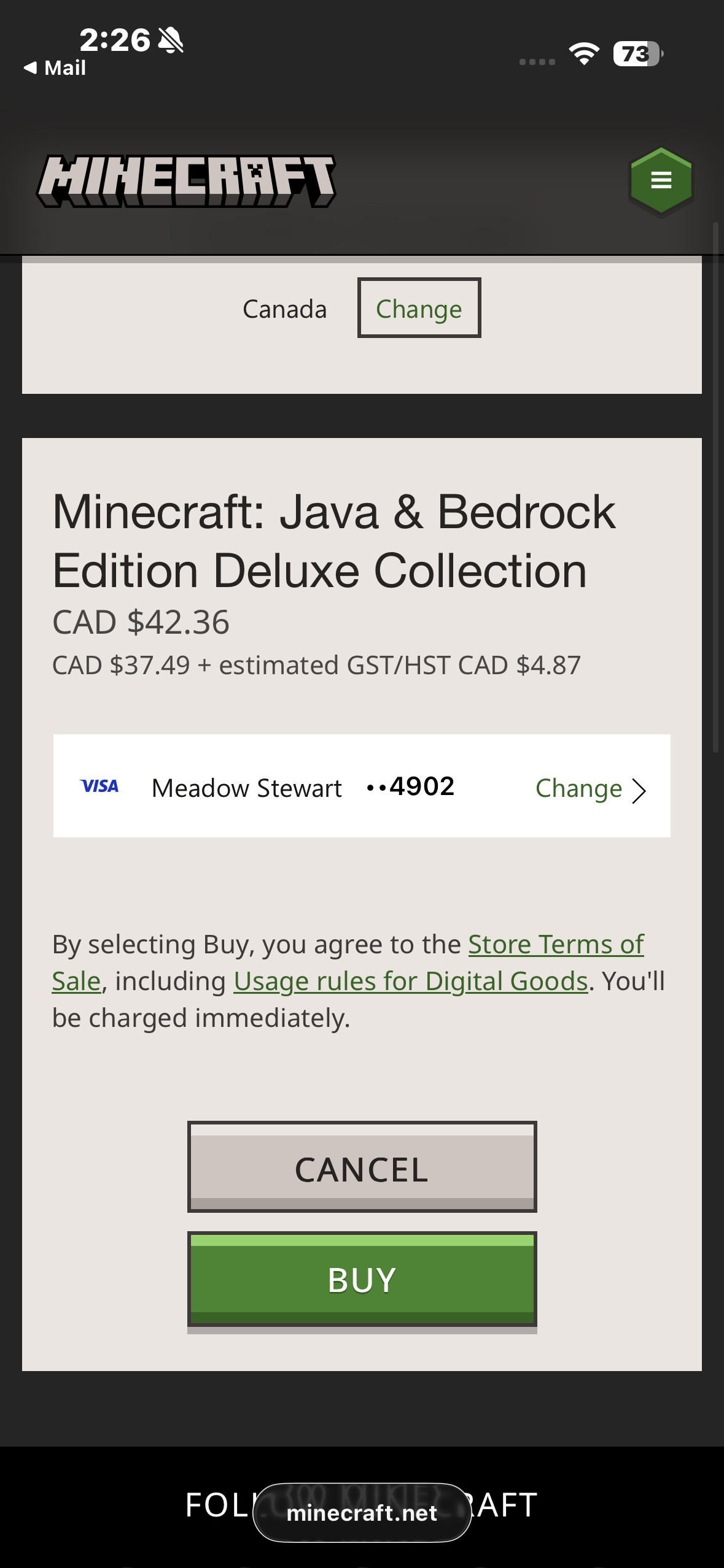 The price shown on the minecraft.net page prior to checking is showing the USD price. You can confirm the Canadian CAD price at French Canadian page here.