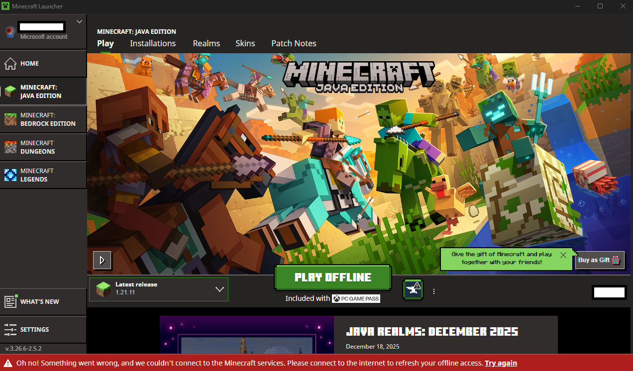 It also seems to affect the minecraft.net website when it happens, which I didn’t notice until I tried updating my skin the other day.
