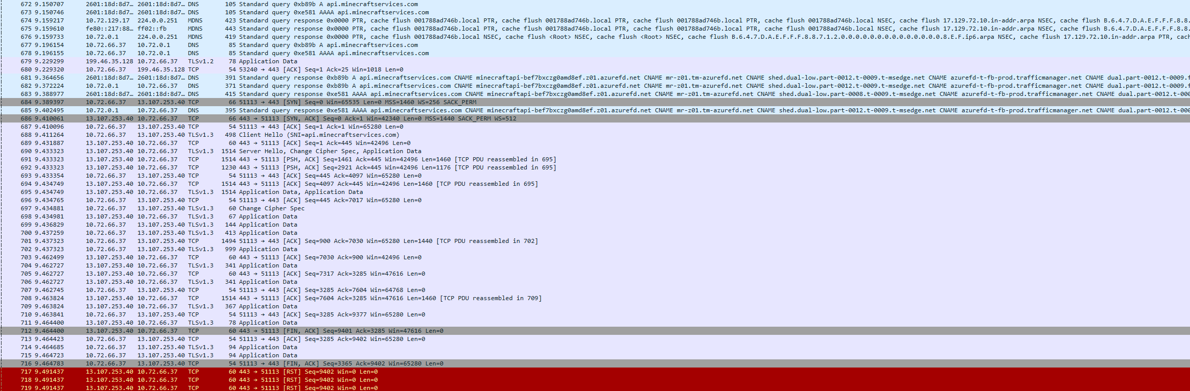 When trying to login in to Minecraft using any number of launchers, including the official Minecraft launcher, the login fails. When trying with the Modrinth launcher, a bit more detail is provided and I can see that the error is generated by an HTTP 429 response from the Minecraft API. I confirmed that the official Minecraft launcher generates the same error using Wireshark, where I observed that the Minecraft/Mojang API sent a TCP RST as well.
