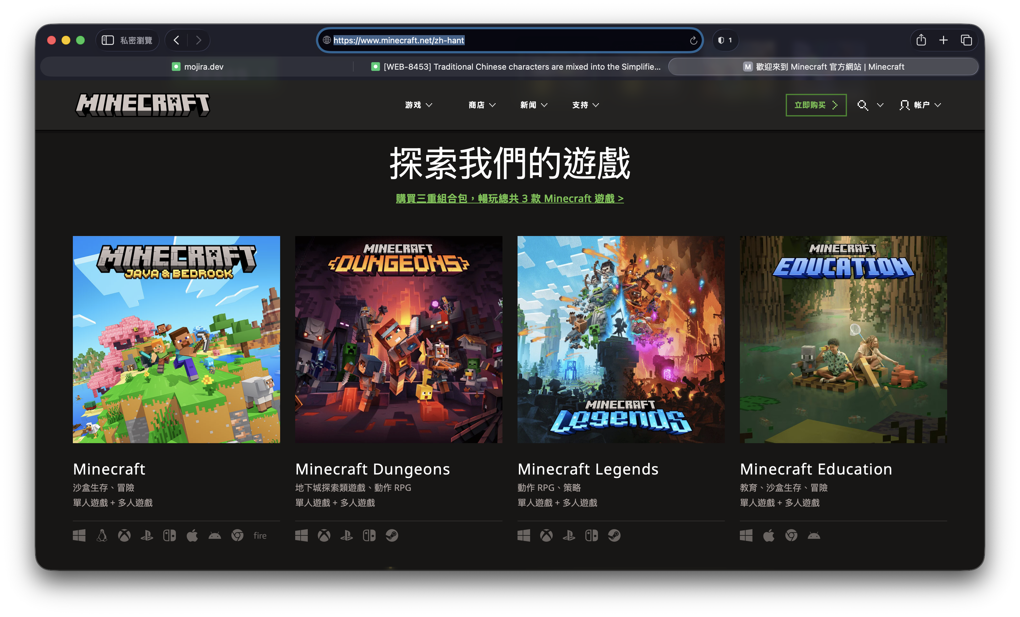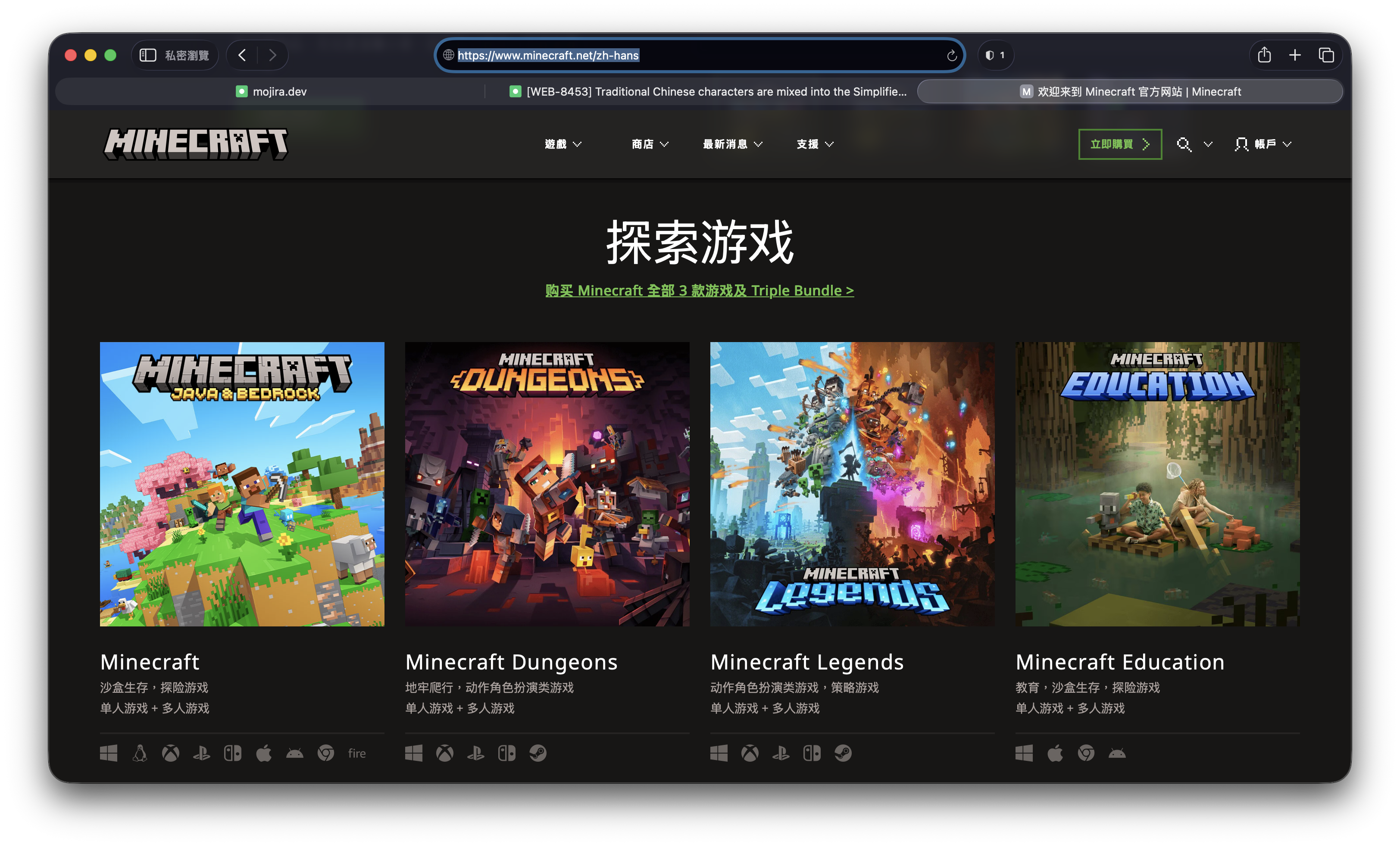 Visit https://www.minecraft.net/zh-hans (Simplified Chinese version (zh-hans) of the site) and https://www.minecraft.net/zh-hant (Traditional Chinese version (zh-hant) of the site)